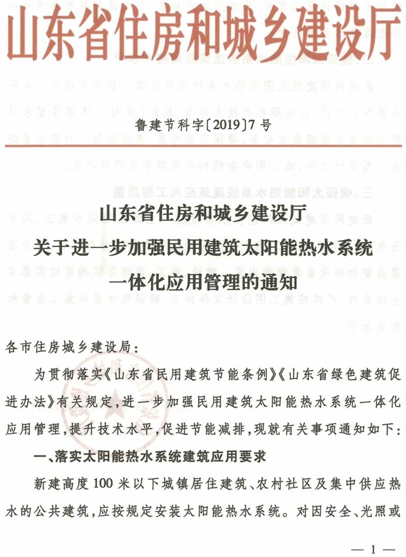 關(guān)于進(jìn)一步加強民用建筑太陽能熱水系統(tǒng)一體化應(yīng)用管理的通知